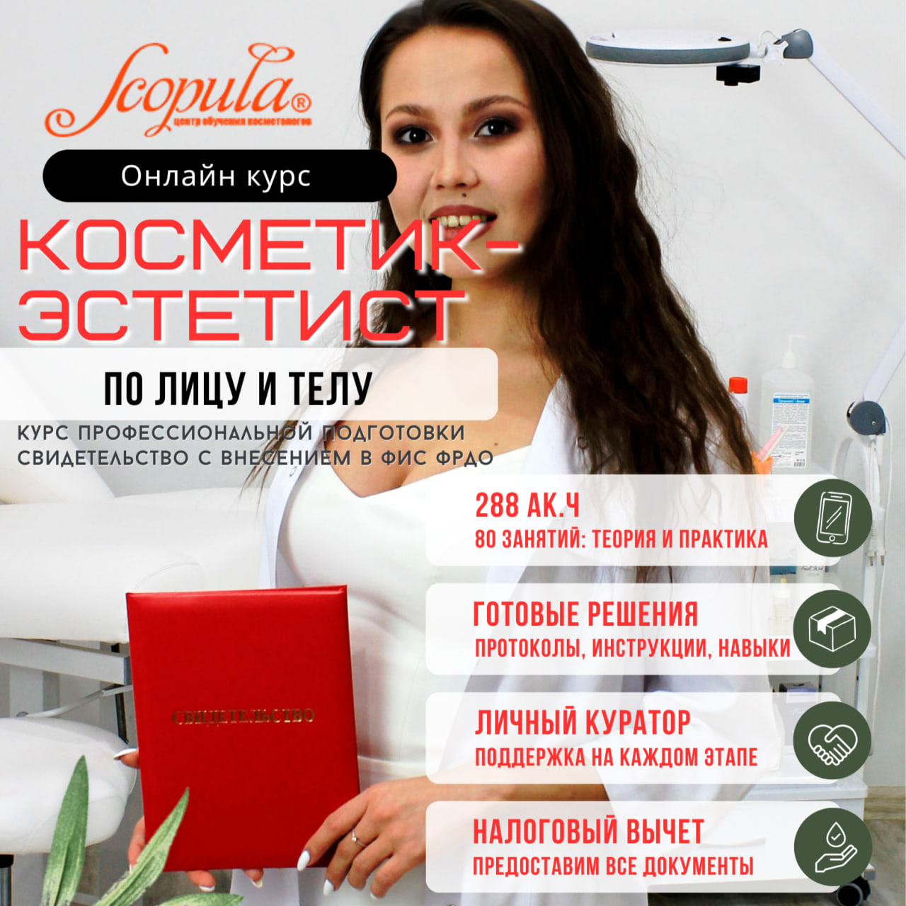 Онлайн-курс Косметик-эстетист, профессиональная подготовка 288 час
